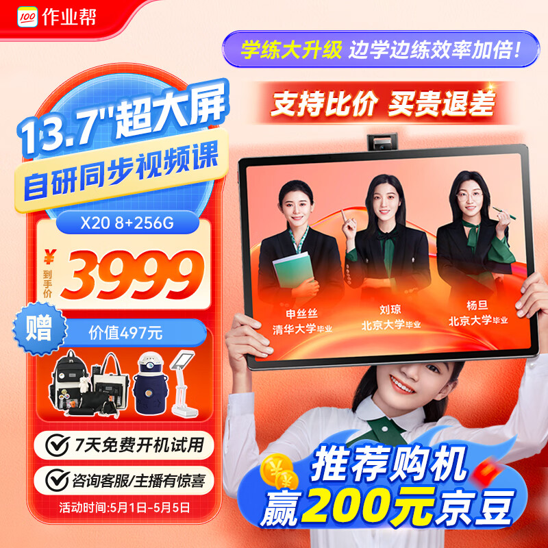 作业帮学习机X20学练升级 小学到高中全科作业辅导学习平板电脑教材同步学家教机 13.7''护眼屏8+256G价格:3999.00元!