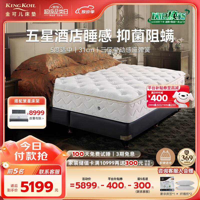 金可儿(Kingkoil)床垫威斯丁酒店款乳胶席梦思弹簧床垫软硬适中繁星A床垫1.8x2米价格:5899.00元!