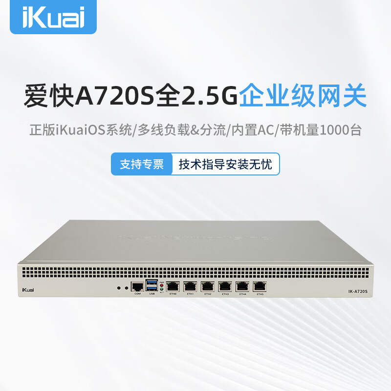 爱快(iKuai)全2.5G企业路由器 多WAN/多LAN口 一键认证/VPN/策略路由/日志审计 USB3.019英寸带机1000台A720S价格:4999.00元!