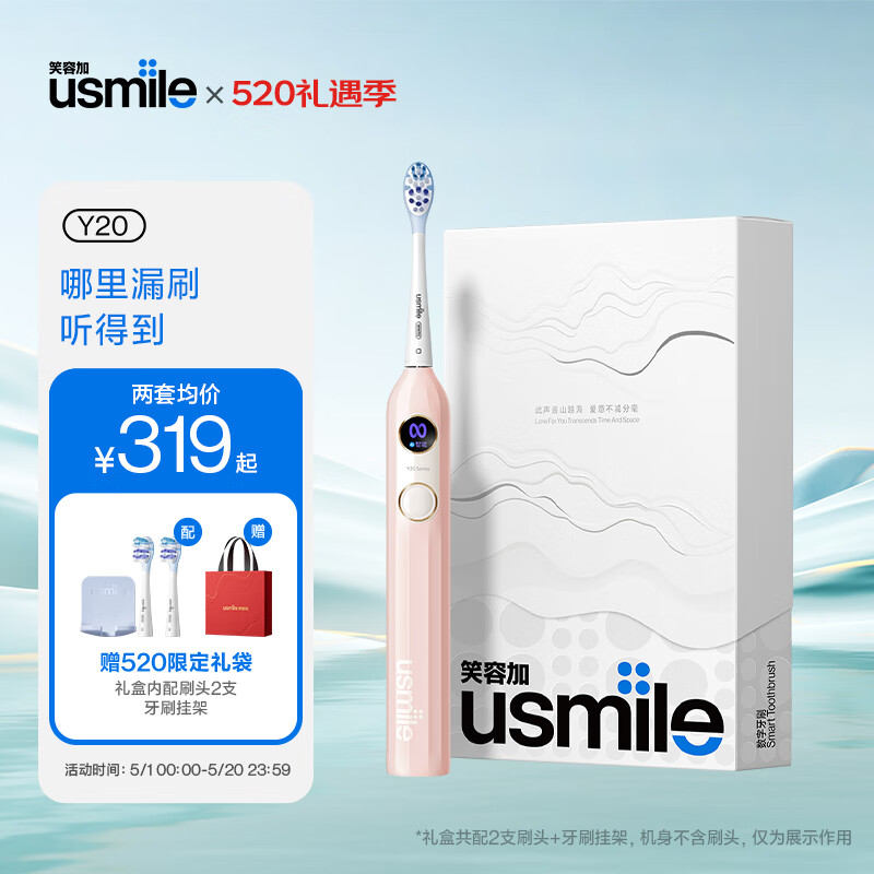 usmile 笑容加电动牙刷 成人声波震动电动牙刷 情侣款送男友/送女友 Y20贝儿粉 520情人节礼物价格:359.00元!