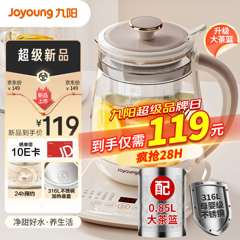 九阳(Joyoung)养生壶 煮茶壶 1.5升家用办公室烧水壶 316L不锈钢 加大滤网恒温电热水壶煮茶器K15D-WY345价格:129.00元!