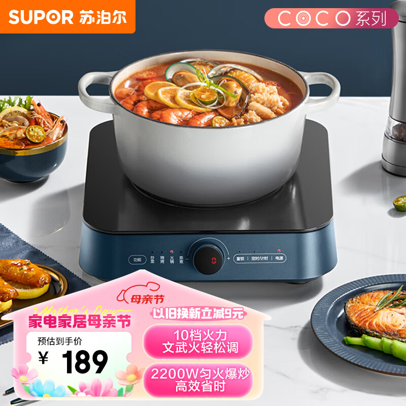 苏泊尔(SUPOR)电磁炉 电陶炉 2200W大功率 无高频电磁辐射 智能计时 家用火锅炉 炒菜 围炉煮茶C22-CS12价格:189.00元!