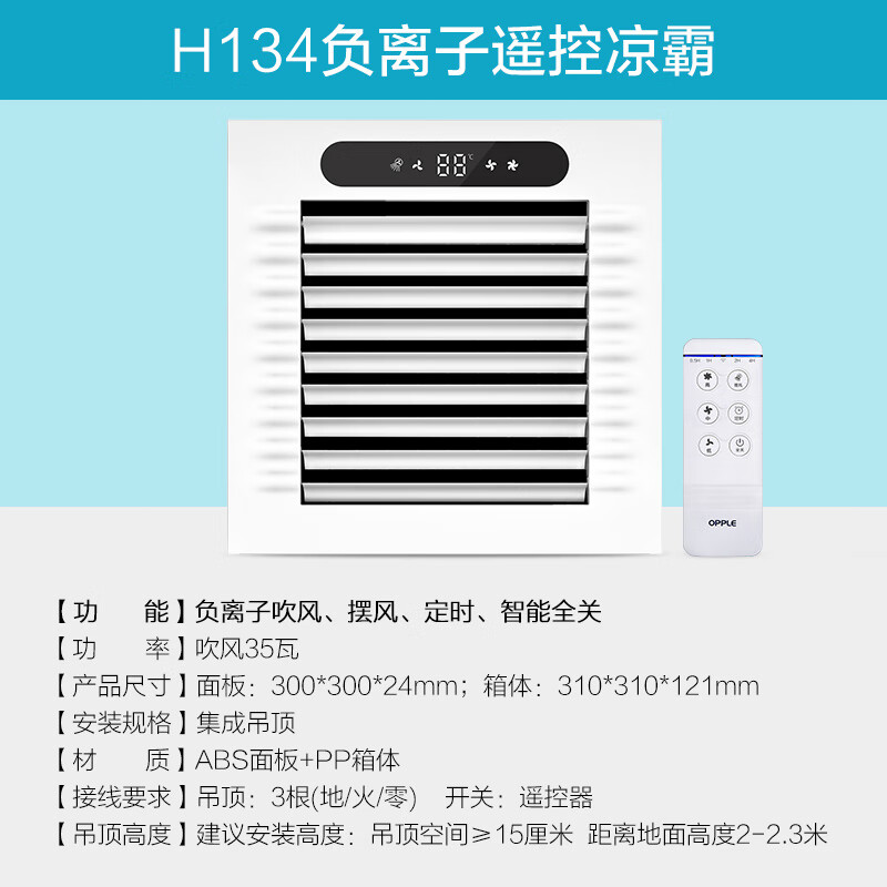 OPPLE欧普凉霸厨房卫生间集成吊顶凉霸无线遥控两档调速降温 JDSH134价格:249.00元!