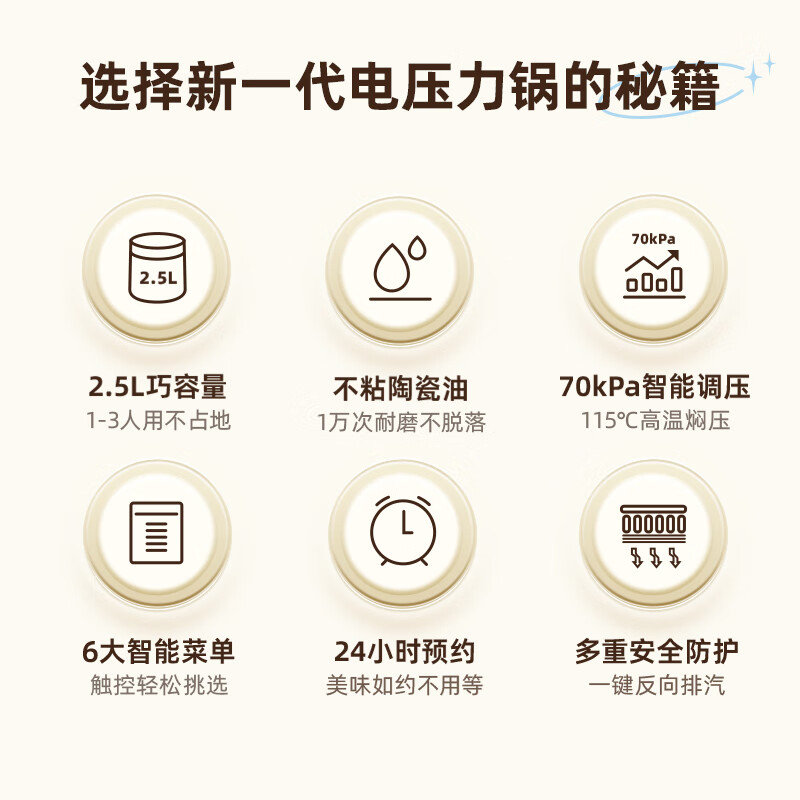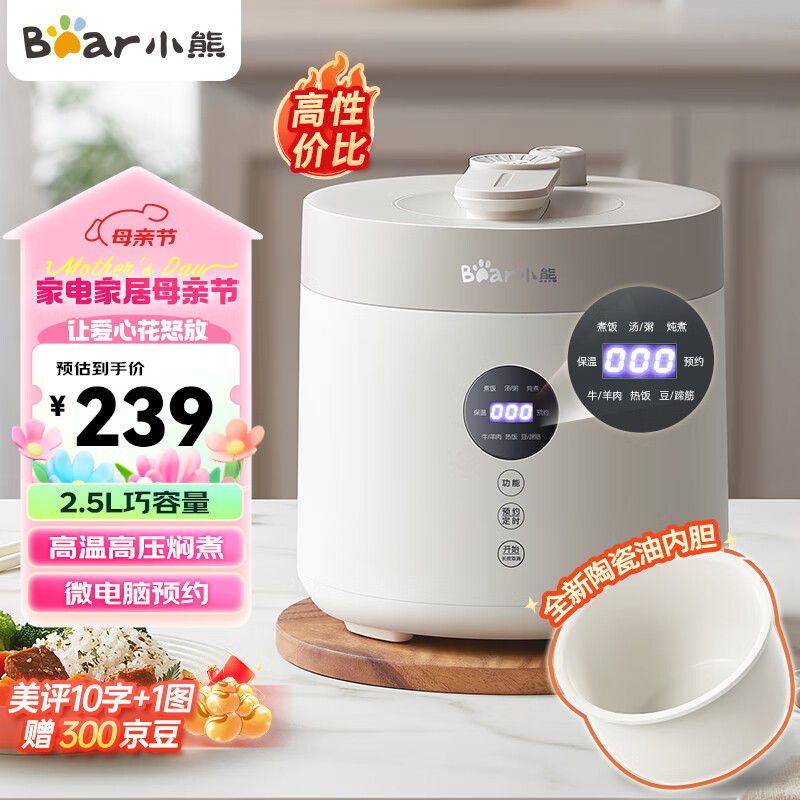 小熊(Bear)电锅 电高压锅 小型智能高压电饭锅 家用多功能迷你可打火锅自动控压 YLB-C25R5 2.5升2~3人价格:239.00元!