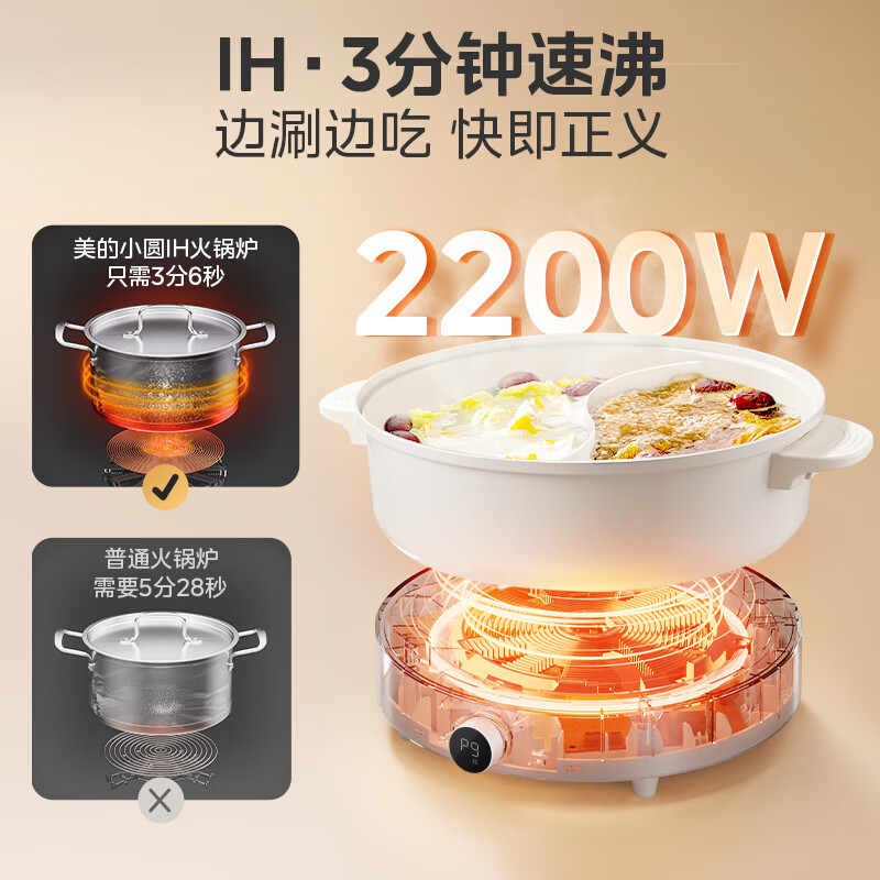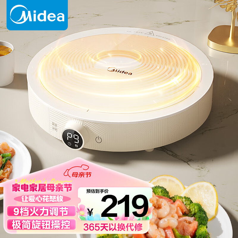 美的(Midea)电磁炉 家用2200W大功率 电磁灶火锅炉 爆炒电磁炉 火锅炒菜蒸煮 旋钮操控 MC-E22HG55-Y02价格:239.00元!