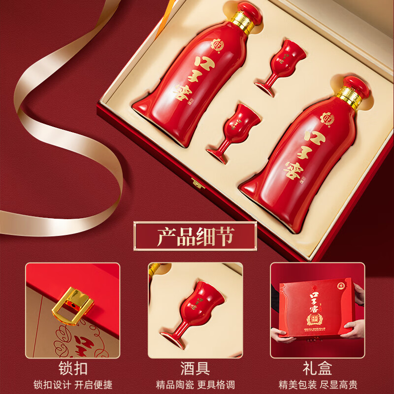 口子窖 六年型 兼香型白酒 52度 450ml*2瓶礼盒装 送礼宴请价格:306.00元!