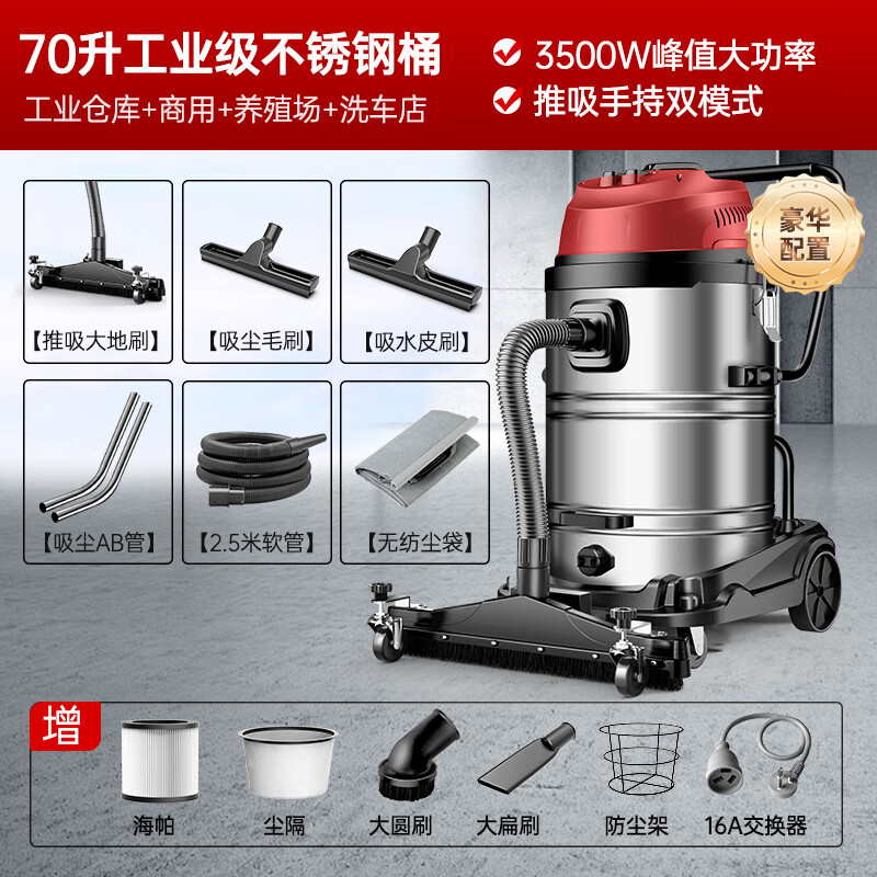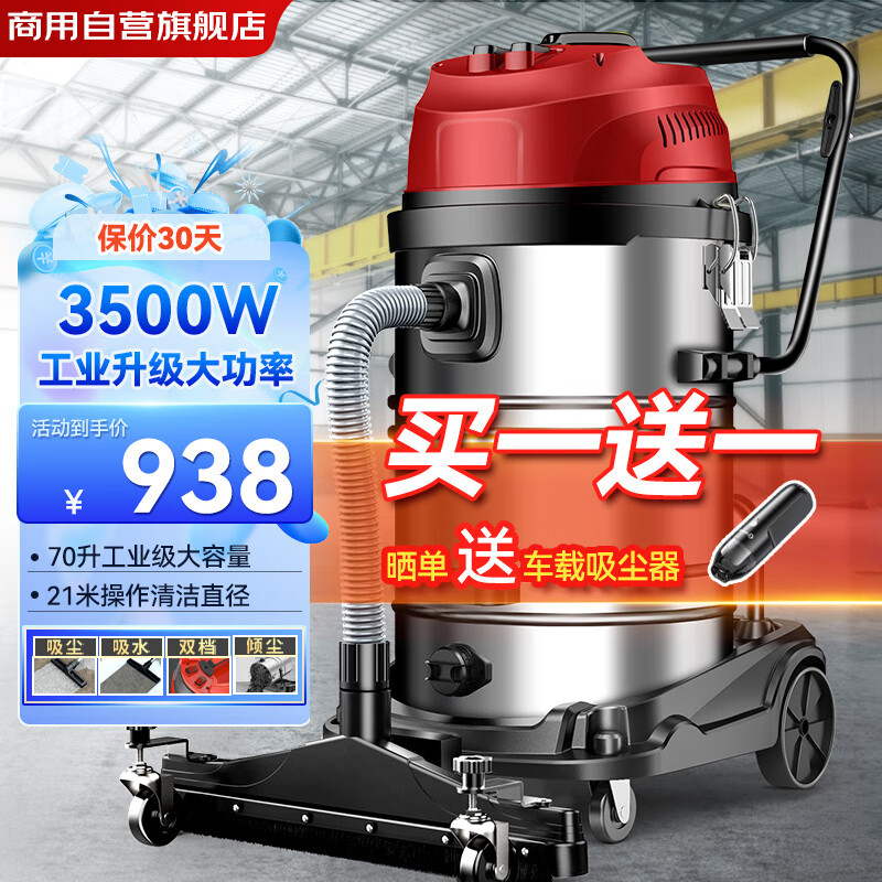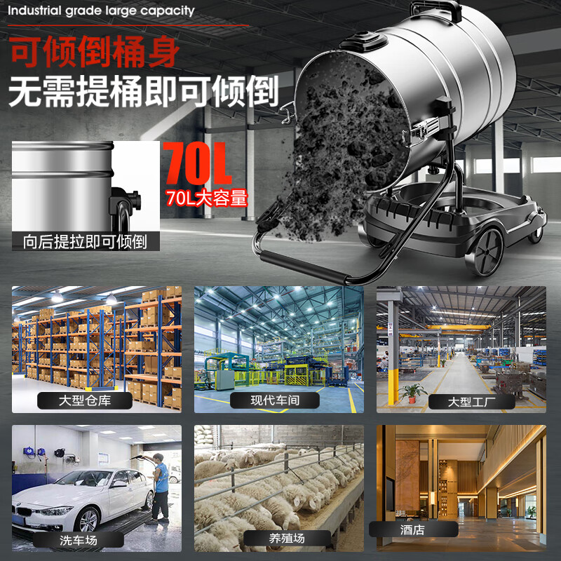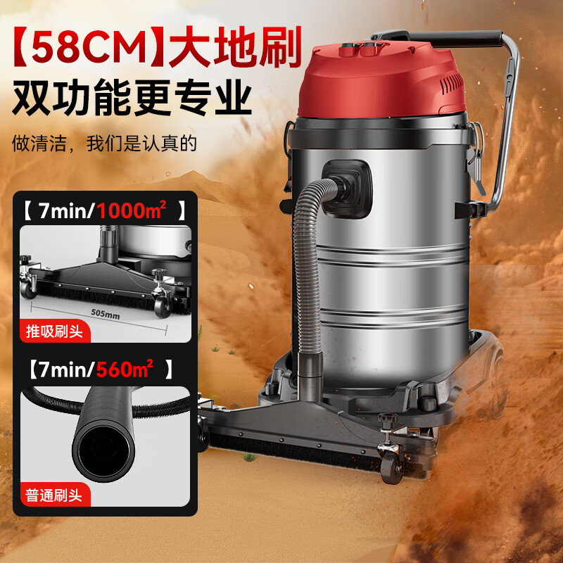 扬子(YANGZI)3500W大功率工业吸尘器70L大容量大型桶式吸尘机商用大吸力工厂车间推吸大地刷粉尘机价格:1038.00元!