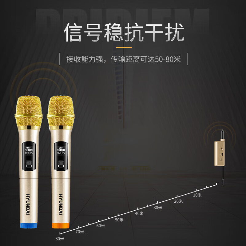 HYUNDAI 现代无线麦克风U段话筒家庭KTV唱歌演讲舞台K歌会议音箱音响功放电视车载电脑H20充电接收器单只价格:99.00元!