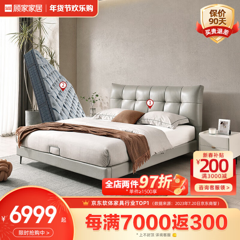 顾家家居(KUKA)席梦思床垫爱可扣弹簧床垫M1081 1.8夺冠PRO+暮岩灰8071皮床春节后发货价格:6999.00元!