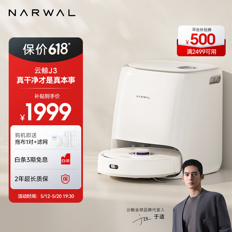 云鲸扫地机器人扫拖洗烘一体机 自清洗扫地机擦地机拖地机器人 自清洁智能换水 云鲸J3小鲸灵单机版价格:2499.00元!
