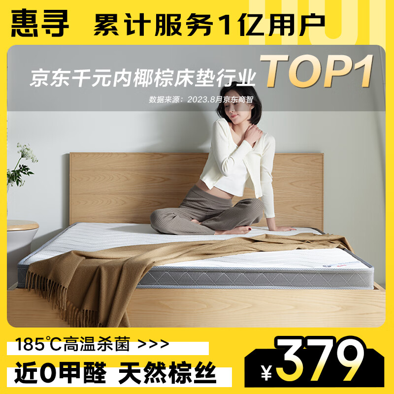 惠寻 京东自有品牌 椰棕床垫硬垫薄床垫偏硬1.5*1.9米10cm厚折叠价格:379.00元!