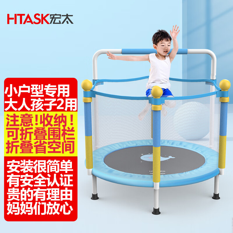 宏太(HongTai)蹦蹦床带护网可折叠跳跳床儿童家用室内健身器材成人健身跳床价格:409.00元!