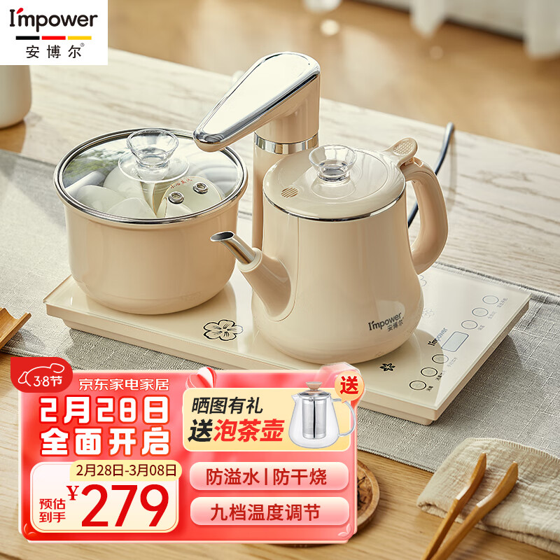 安博尔全自动上水电热水壶双层防烫全智能保温烧水壶 茶台一体煮茶恒温电茶壶一体机 HB-5038A价格:279.00元!
