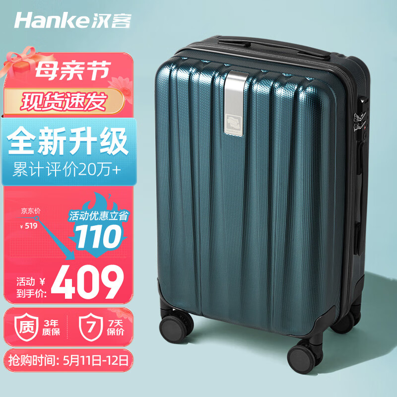 汉客行李箱男拉杆箱女旅行箱60多升大容量24英寸墨绿色密码箱再次升级价格:519.00元!
