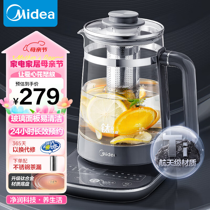 美的(Midea)养生壶 钢化玻璃面板烧水壶 24小时预约12小时恒温11档控温煮茶壶 钛合金底盘电热水壶YS15J11-Ti价格:279.00元!