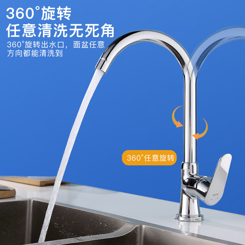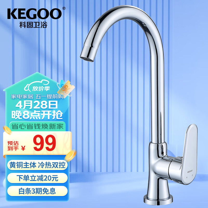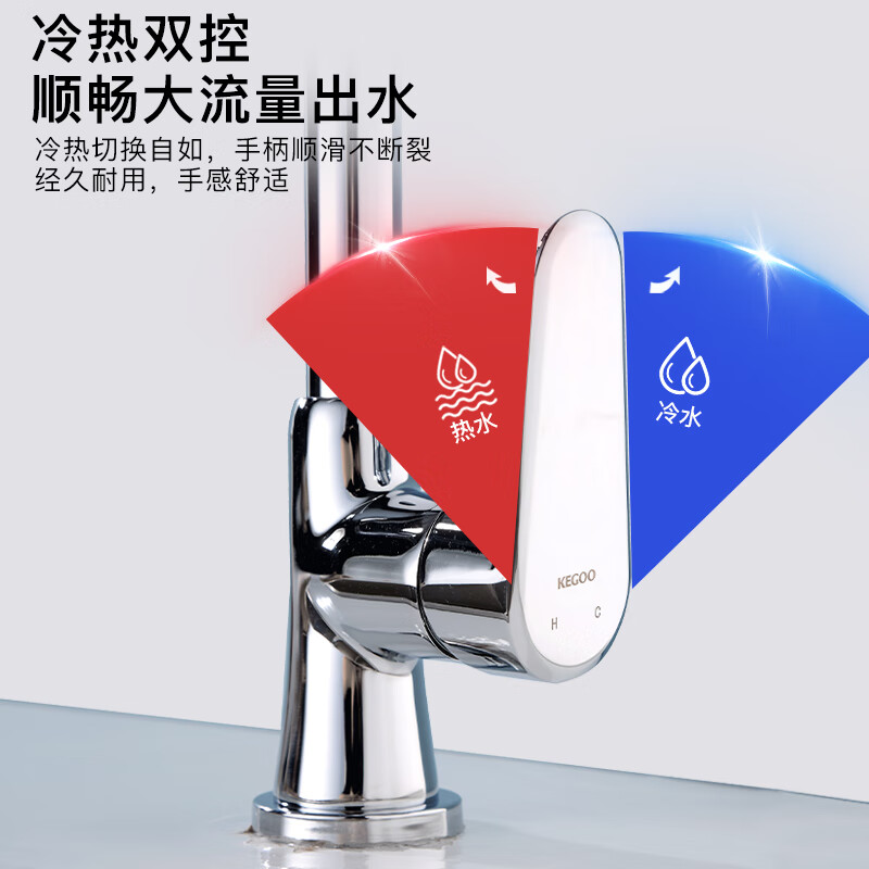 科固(KEGOO)厨房洗菜盆水龙头冷热双温黄铜 水槽洗碗池淘菜盆龙头可旋转K2009价格:119.00元!