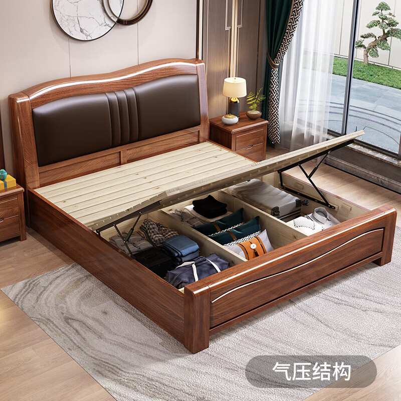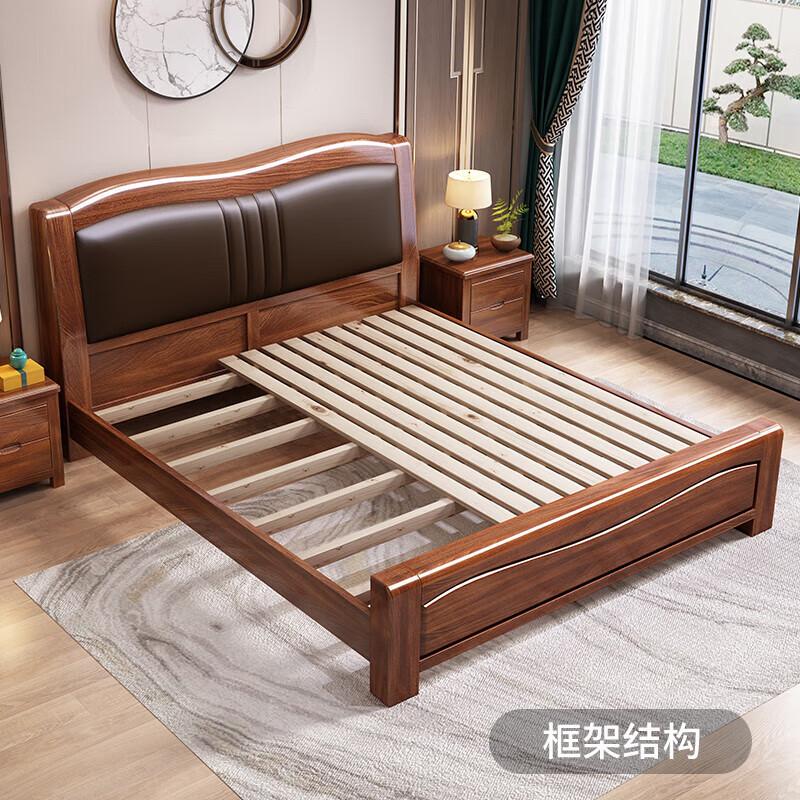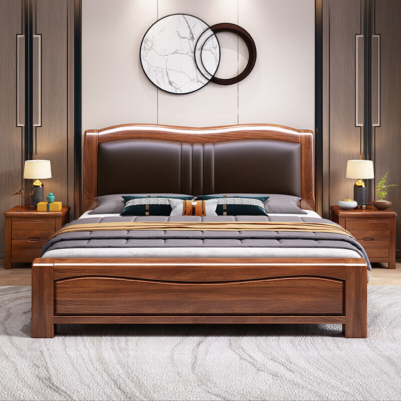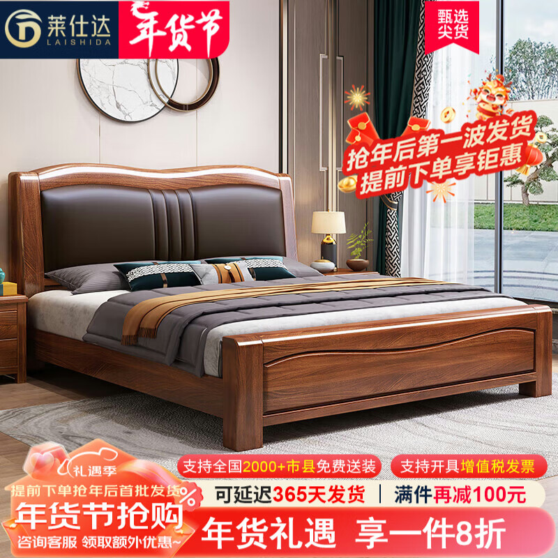 莱仕达中式实木床胡桃木双人床现代1米8主卧室简约婚床A11 1.8床+垫+柜1价格:2999.00元!