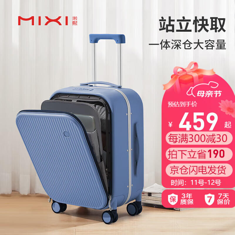 米熙米熙前开盖铝框拉杆箱李箱女大容量旅行箱密码箱男20英寸宝石蓝70价格:649.00元!