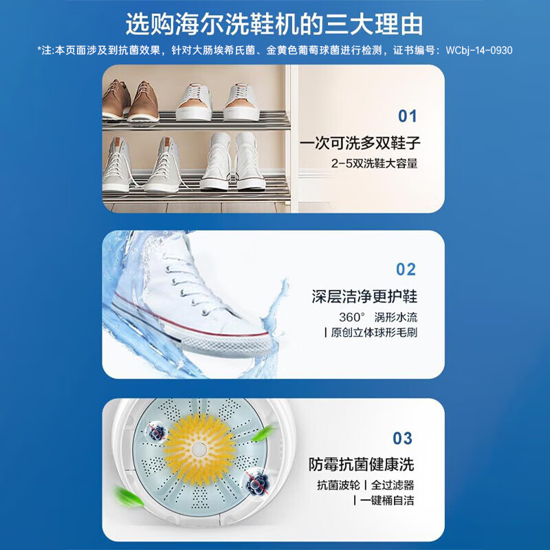 海尔(Haier)洗鞋机全自动刷鞋机洗鞋神器可甩干大容量一机三用免拆鞋带可洗2双45码不卡鞋WiFi智能物联XQ2-JU1价格:1599.00元!