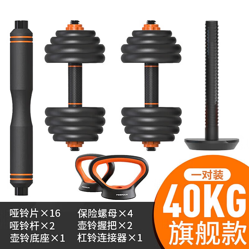 飞尔顿哑铃男杠铃可调节哑铃片健身训练器材家用组合套装旗舰升级款40KG价格:399.00元!