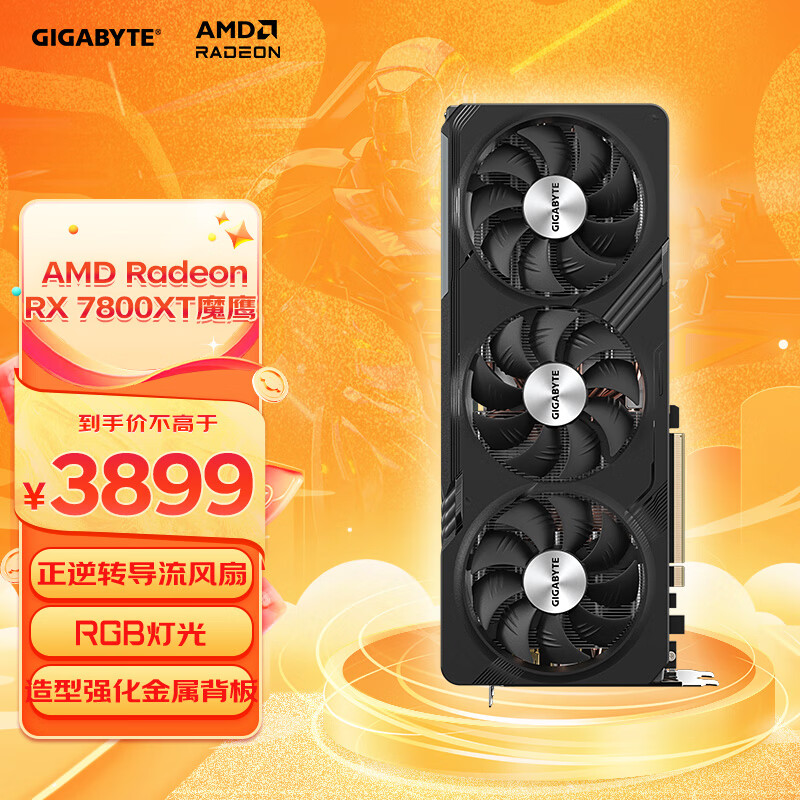 技嘉(GIGABYTE)7800XT显卡 魔鹰 AMD RADEON RX 7800XT GAMING OC RDNA3架构 16GB GDDR6游戏电竞视频剪辑显卡价格:3899.00元!
