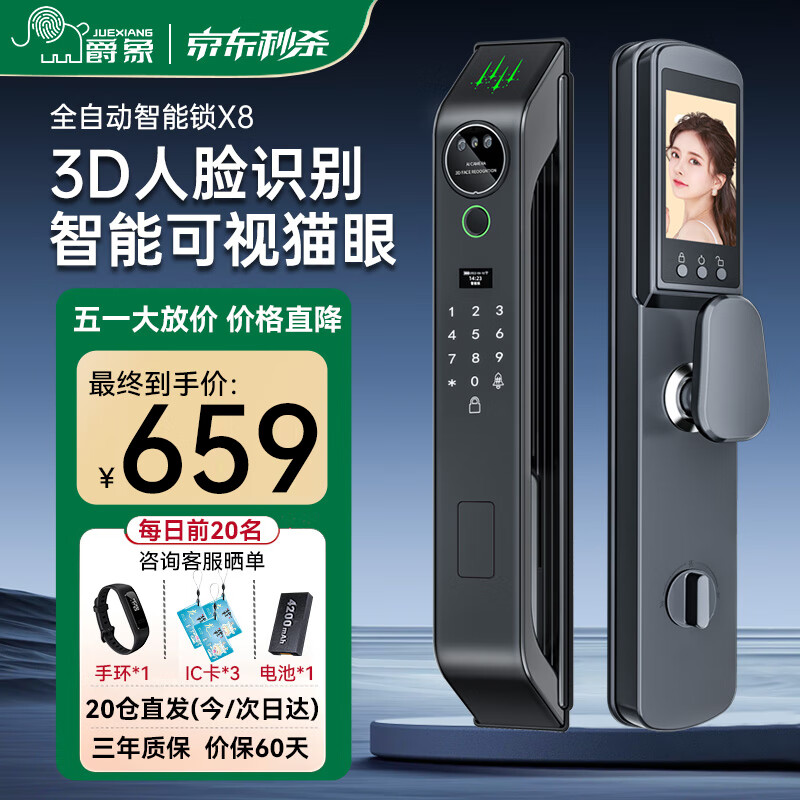 爵象智能门锁 3D人脸识别指纹锁电子锁入户门密码锁全自动包安装价格:659.00元!