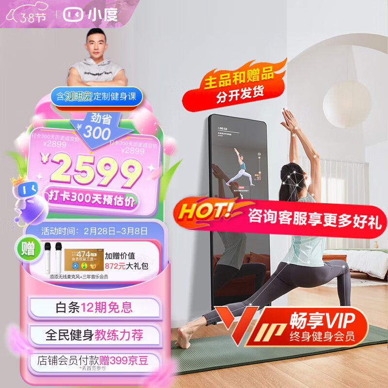 小度添添智能健身镜 M30 健身畅享版 健身镜私教 运动镜 家庭KTV 魔镜 居家健身 含终身会员价格:3599.00元!