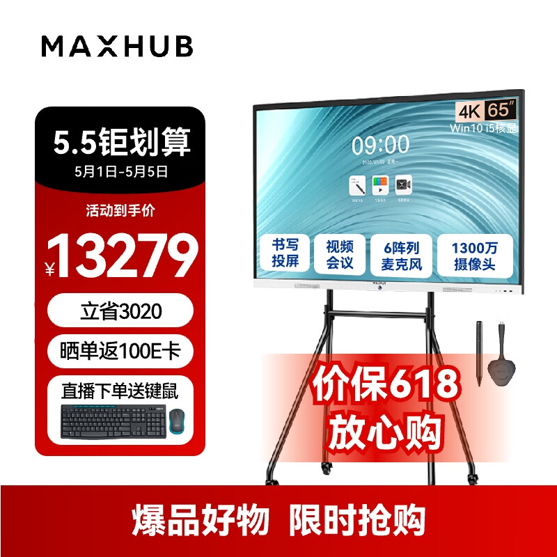 maxhub视频会议平板一体机教学智慧屏摄像头麦克风触摸屏白板新锐Pro65 Win10+简约支架+无线传屏+笔价格:15319.00元!