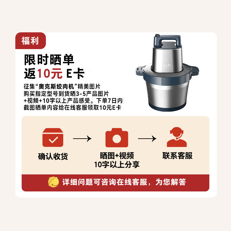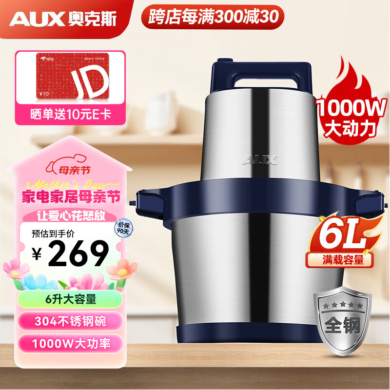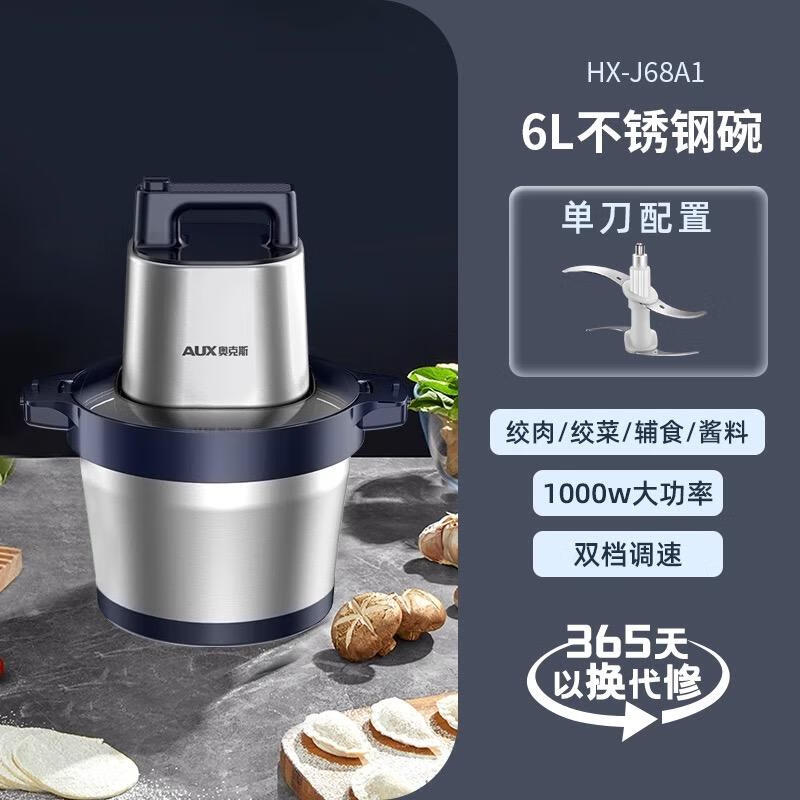 奥克斯(AUX)绞肉机家用6L多功能辅食机电动料理机全不锈钢切肉机大功率碎肉馅机多功能绞菜机 HX-J681A价格:269.00元!