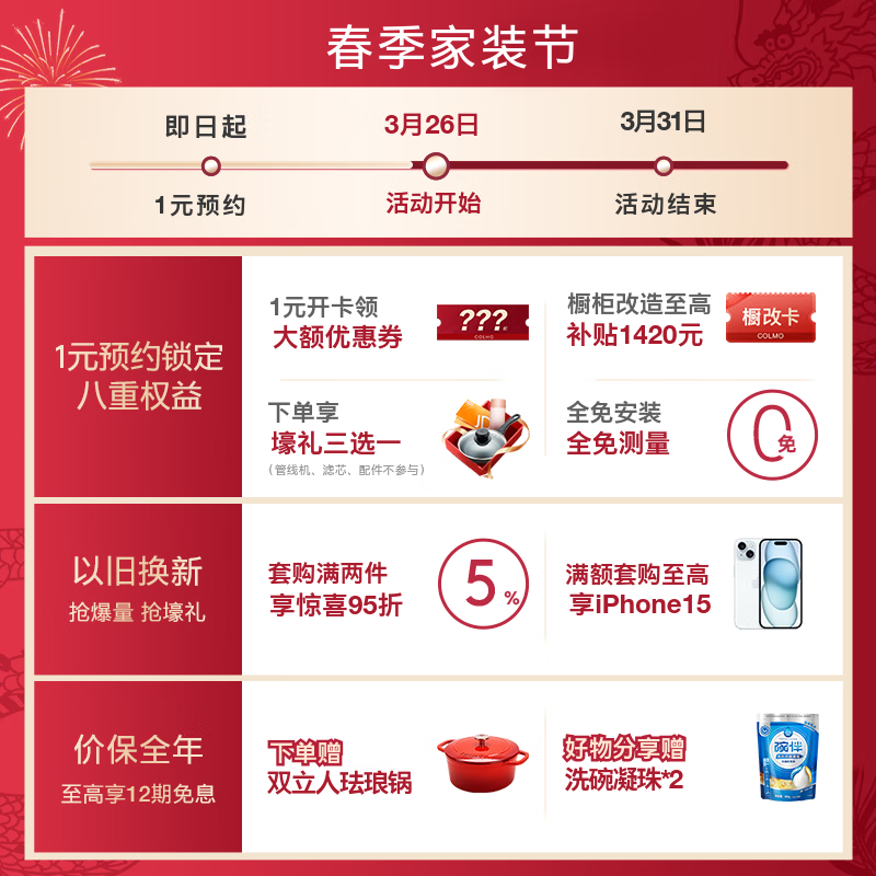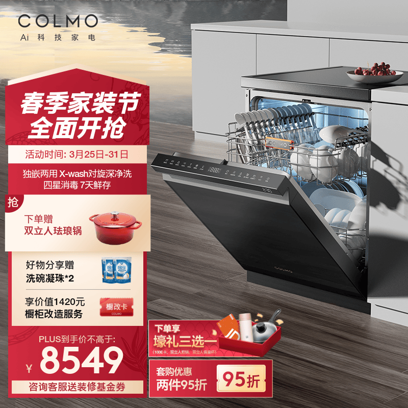 COLMO 15套独嵌两用洗碗机 X-wash对旋喷淋 离子热烘 碗筷内壁全干 7天离子鲜存无异味 京东小家智能G05价格:8999.00元!