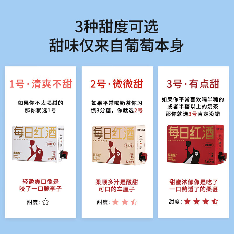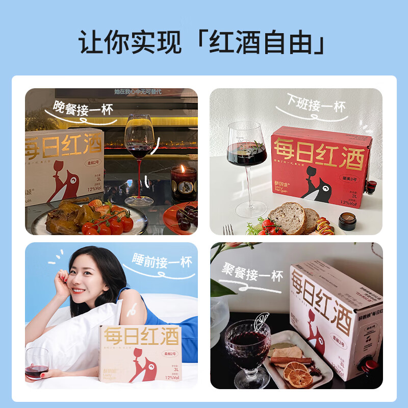 醉鹅娘 Winedaily每日红酒2号口味 干红葡萄酒国产红酒3L盒装价格:124.20元!