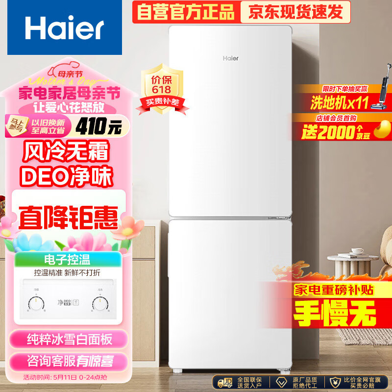 海尔(Haier)170升两门二门双门节能低噪风冷无霜小型家用电冰箱宿舍租房不占地方以旧换新BCD-170WLHC2Z0WV价格:999.00元!