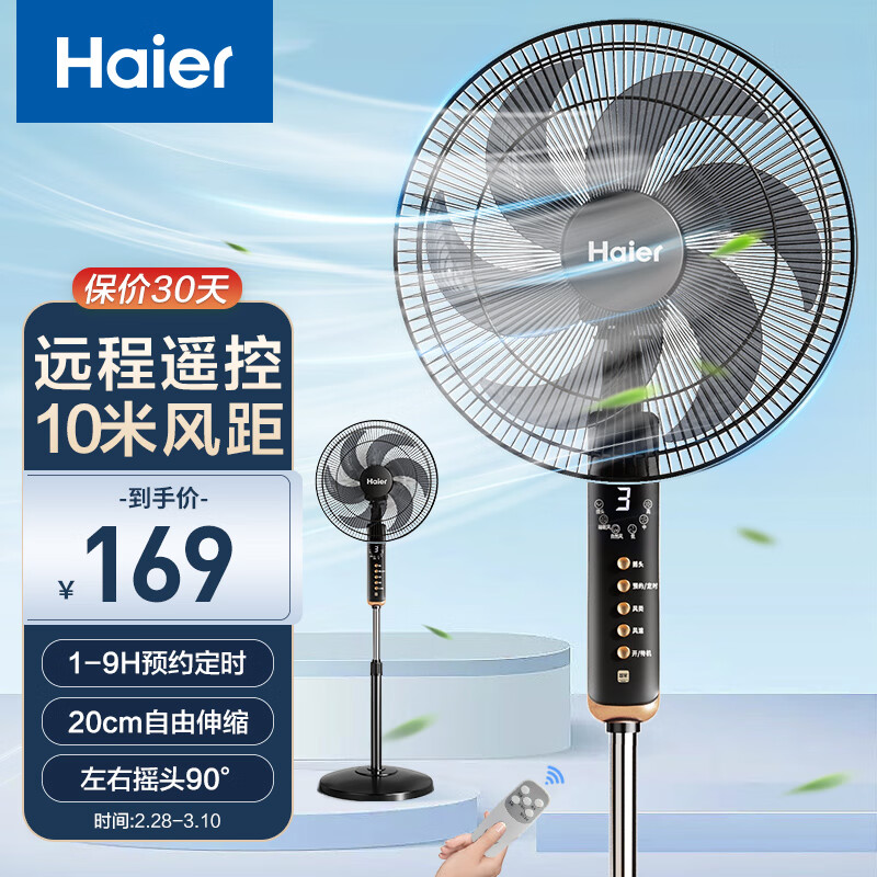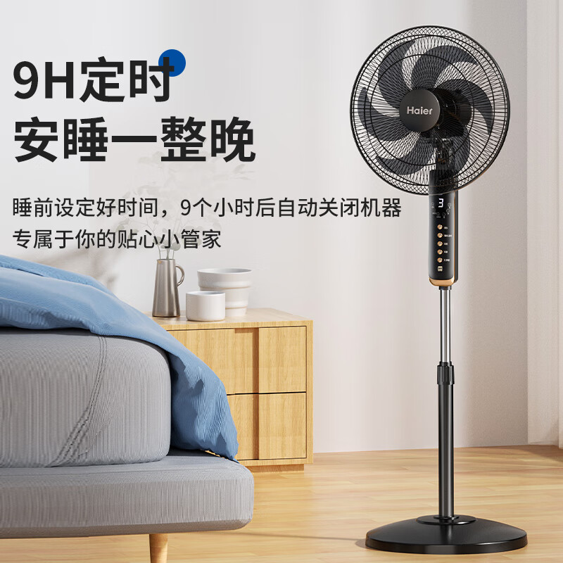 海尔(Haier)电风扇家用落地扇学生立式大风量电扇客厅宿舍节能音轻风扇办公室遥控定时轻音五叶扇HFS-Y3511B价格:179.00元!