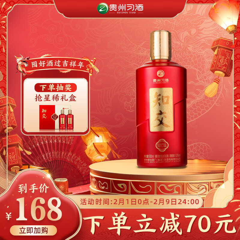 习酒·知交 知行礼 酱香型白酒53度 500ml 单瓶装价格:299.00元!