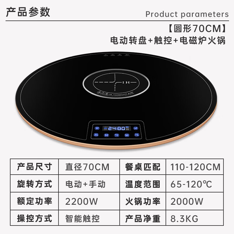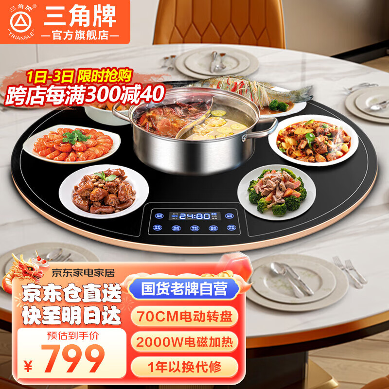 三角牌(Triangle) 暖菜板热菜板加热板饭菜保温板电磁炉多功能带火锅暖菜转盘自动旋转饭菜餐桌 电动转盘+触控+电磁炉 【70CM】价格:879.00元!
