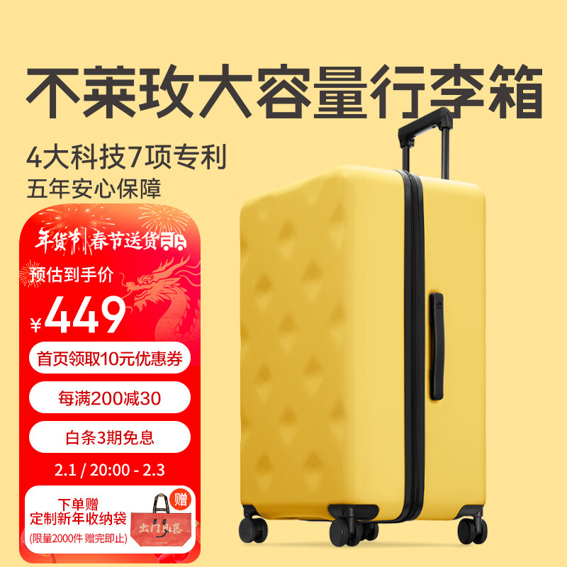 不莱玫大容量行李箱拉杆箱高颜值学生密码箱男女旅行箱24英寸 黄色价格:649.00元!