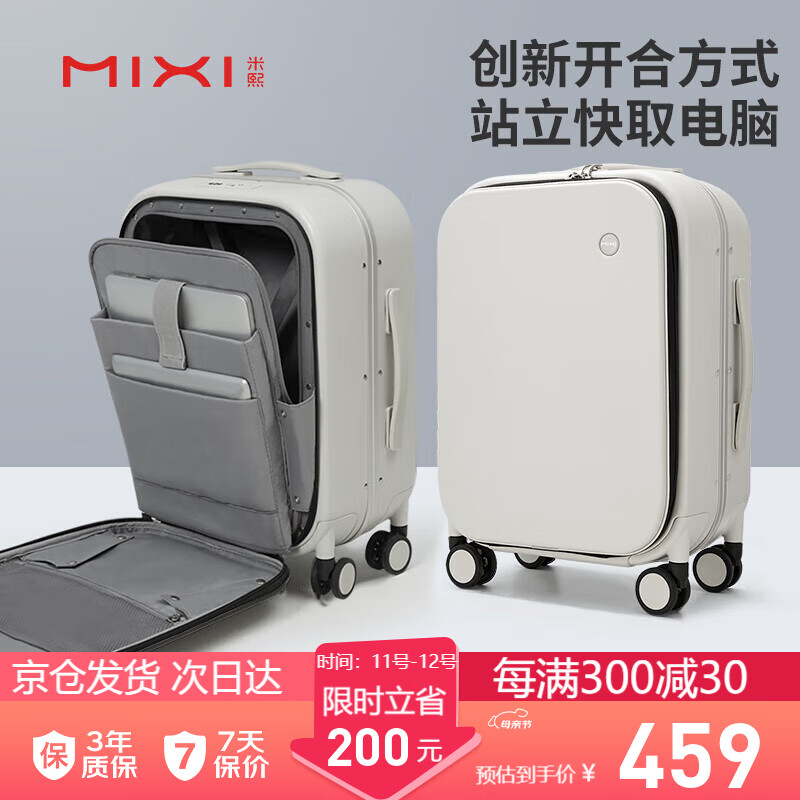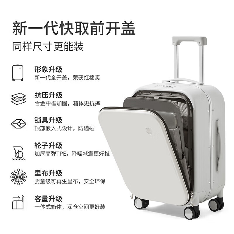 米熙前开盖拉杆箱子行李箱大容量旅行箱女密码箱包登机箱20英寸烟白60价格:659.00元!