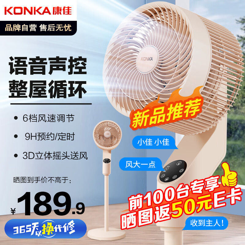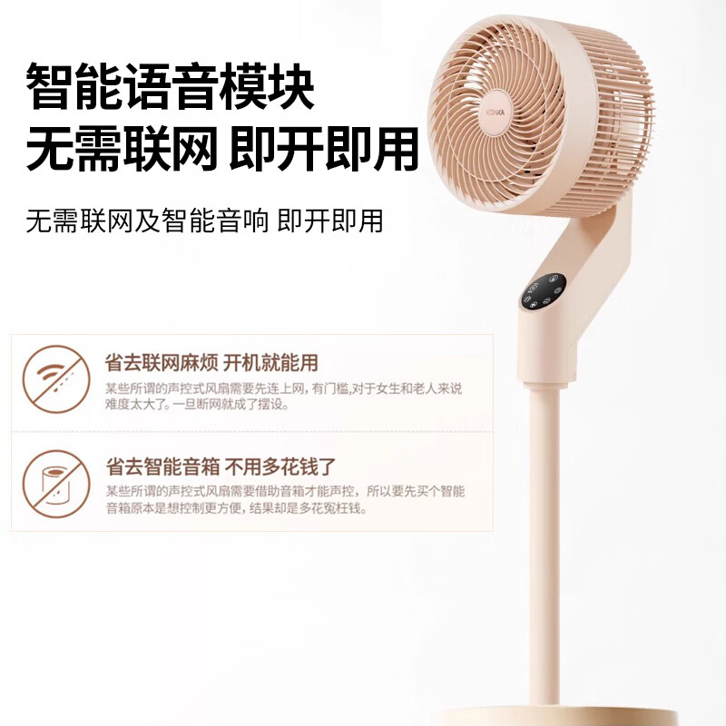 康佳(KONKA)空气循环扇电风扇家用风扇智能语音八字摇头电扇立式大风量落地扇轻音遥控节能换气扇KXHS-1907W-P价格:299.90元!