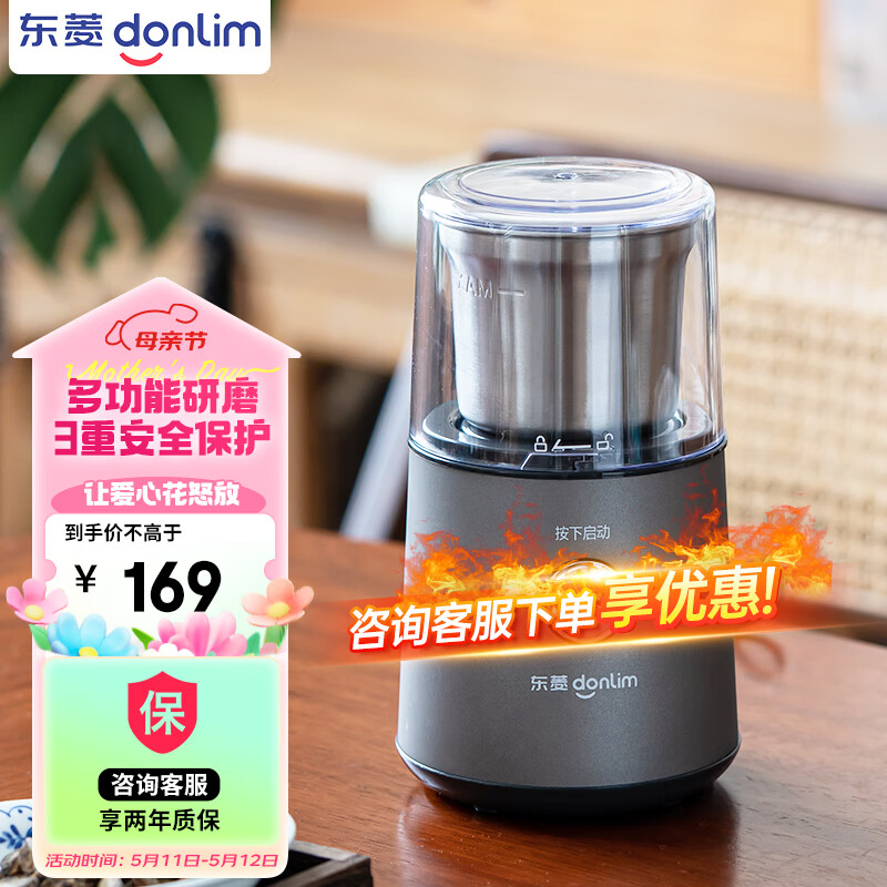 东菱(Donlim)咖啡豆类磨粉机 小型磨粉机 多功能研磨机 磨豆机家用 便携研磨器 好礼推荐 DL-9701价格:169.00元!