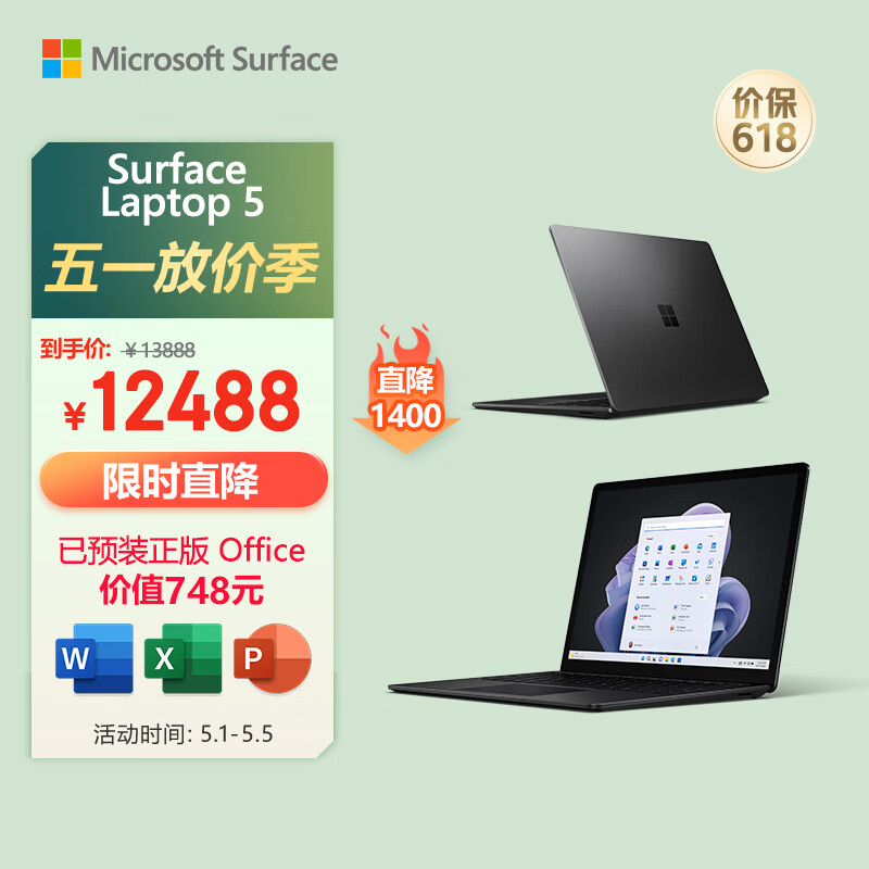 微软Surface Laptop 5 轻薄办公笔记本电脑 i7 16G+512G 典雅黑 Evo认证 15英寸 2.2K高色域触控屏价格:12488.00元!