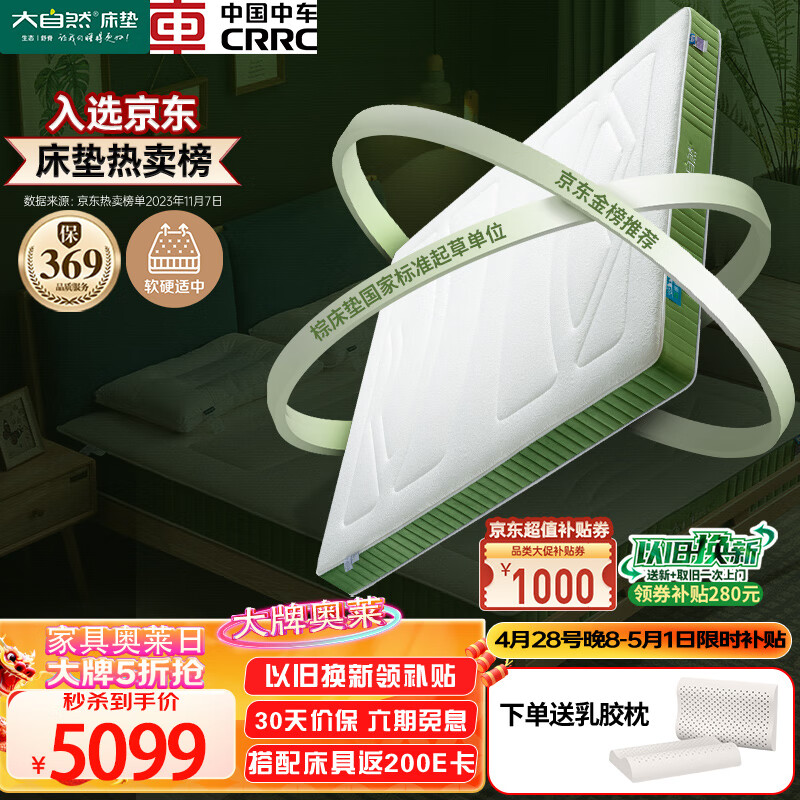 大自然山棕床垫椰棕床垫 可定制榻榻米偏硬棕垫 森梦1.8米*1.9米*16厘米价格:6099.00元!