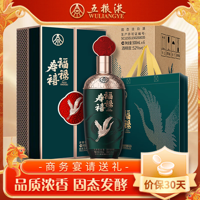五粮液股份 福禄寿禧云浩 浓香型白酒 52度500ml*6瓶整箱装 宴请送礼价格:1499.00元!