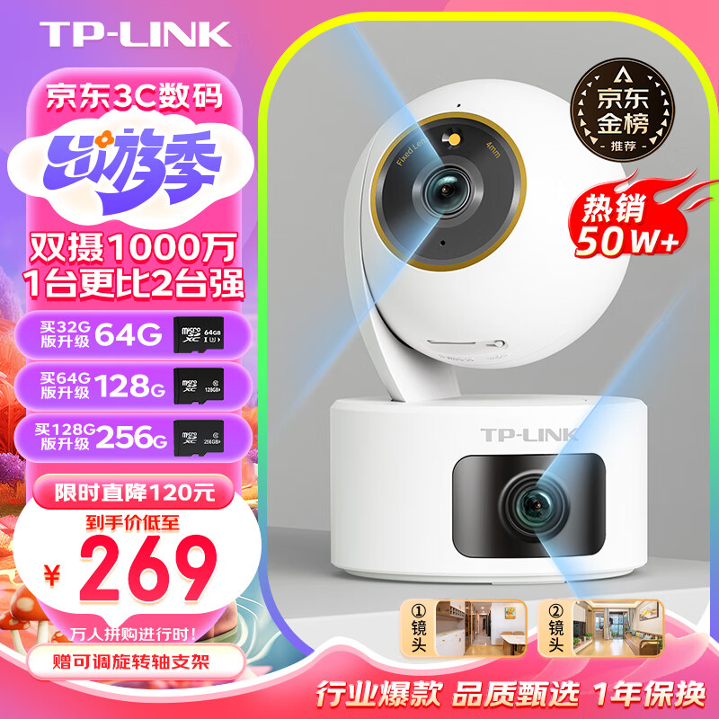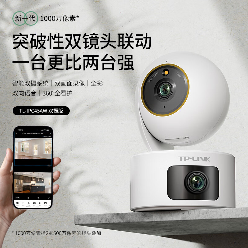 TP-link 双摄1000万监控摄像头家用监控器360度无死角带夜视全景无线家庭室内tplink手机远程高清自动旋转价格:269.00元!