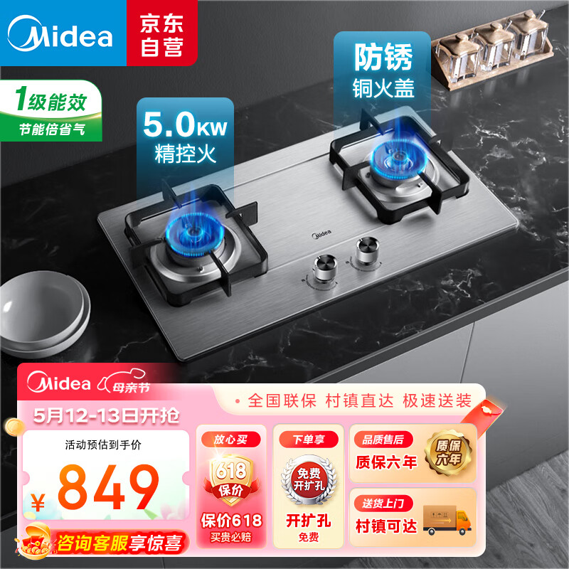 美的(Midea)燃气灶液化气 双灶具 家用5.0kW猛火灶台嵌两用 不锈钢面板 线性精控 一级能效 Q315-M价格:849.00元!