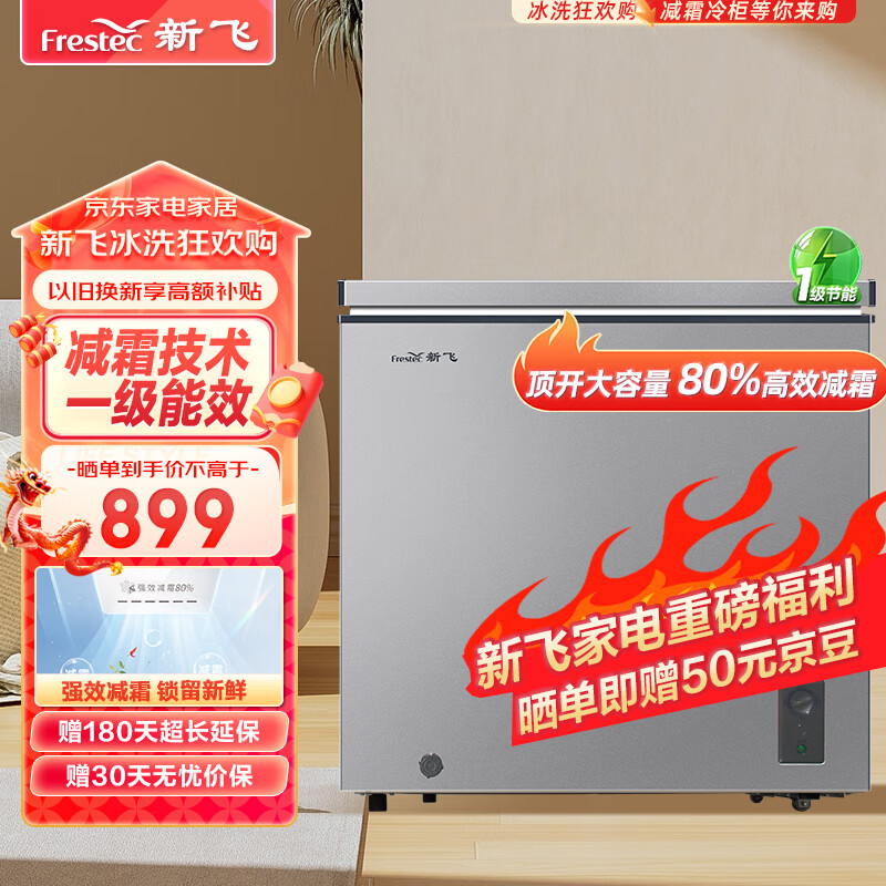 新飞(Frestec)202升减霜冷藏冷冻一级能效节能省电家用商用二合一冷柜冰柜卧式冰箱BC/BD-202KAT/L灰价格:949.00元!