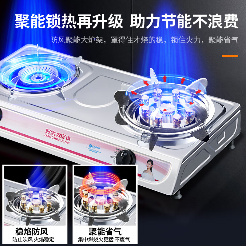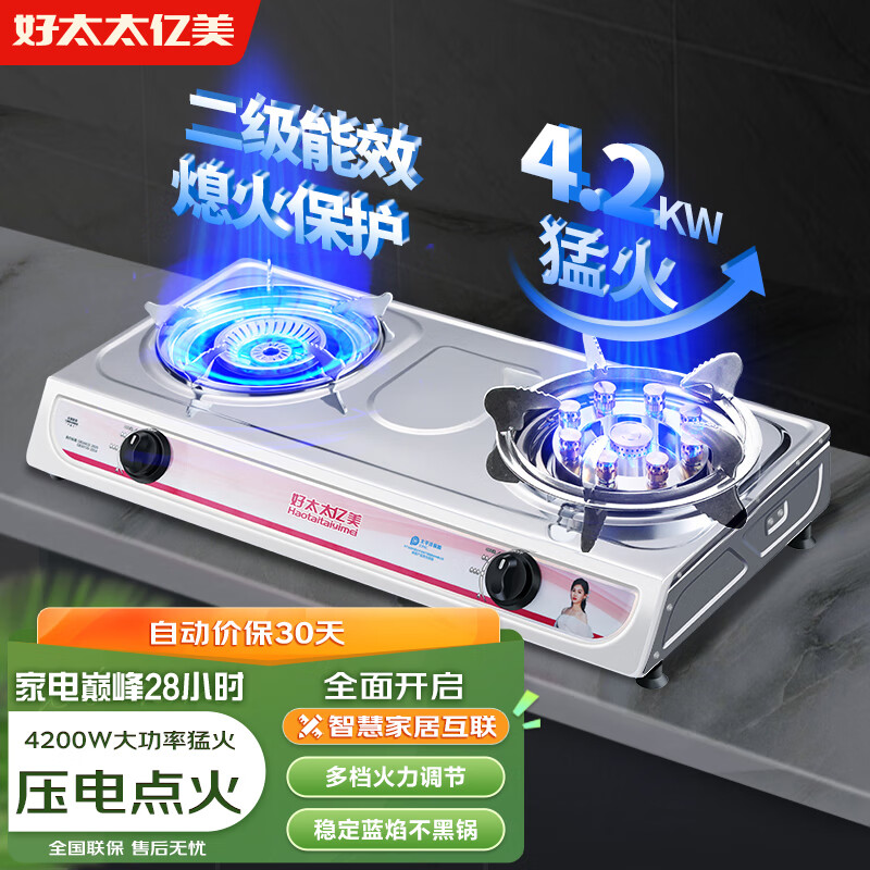 好太太亿美燃气灶台式液化气煤气灶双灶家用双眼燃气灶双炉灶台火力4.2KW猛火台式猛火炉具JZY-T002G-JRTD2价格:249.00元!