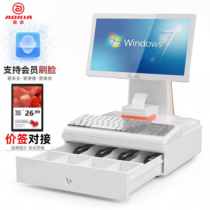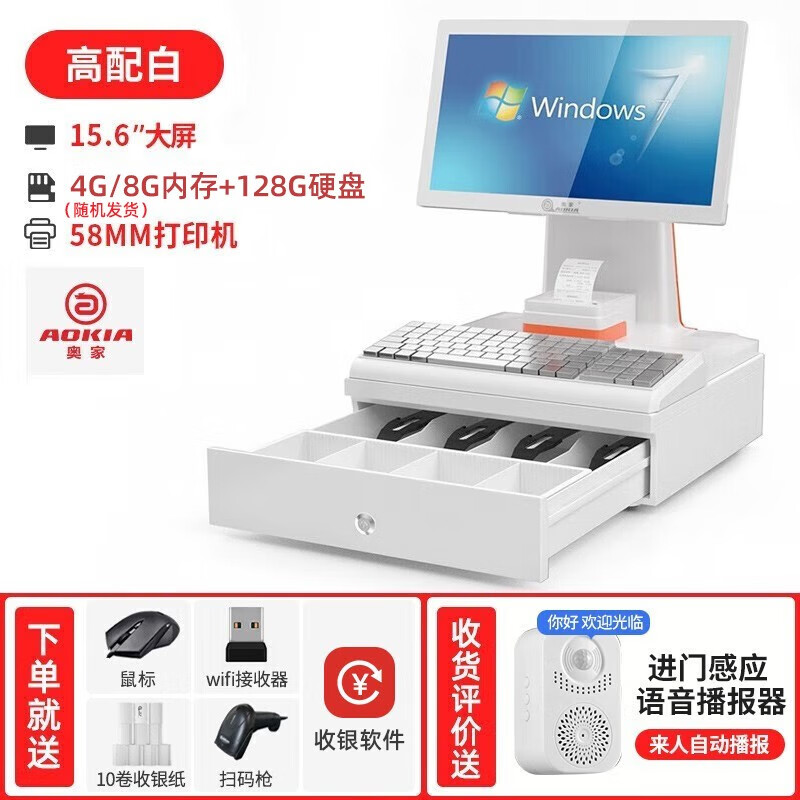 奥家收银机一体机零售超市便利店烟酒药店餐饮点菜收款机收钱扫码软件收银电脑会员管理系统 高配白(8+128G)+云端收银价格:2099.00元!