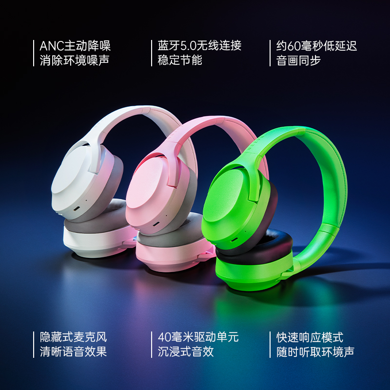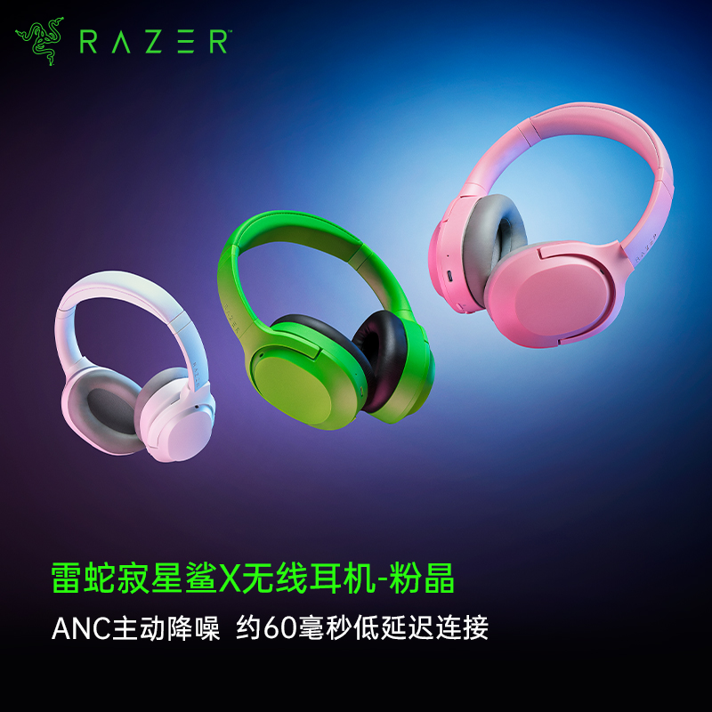 雷蛇 Razer 寂星鲨X 主动降噪ANC 蓝牙5.0头戴式 耳机 音乐电竞 游戏耳麦 粉晶价格:199.00元!