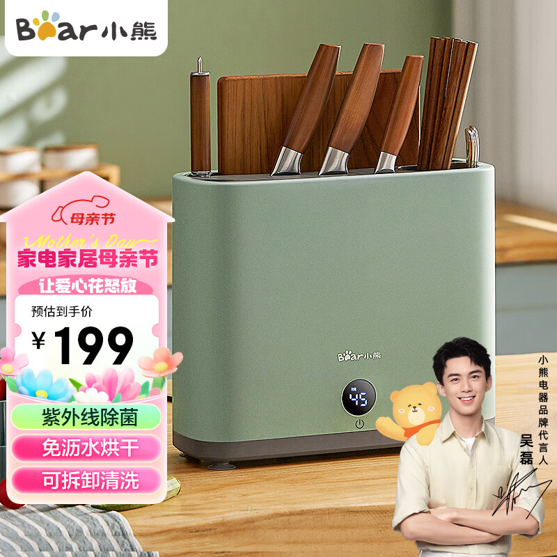 小熊(Bear) 砧板刀具筷子消毒机 家用小型筷子筒紫防霉外线杀菌烘干机 刀架砧板保洁机 UV杀菌+带烘干功能价格:199.00元!