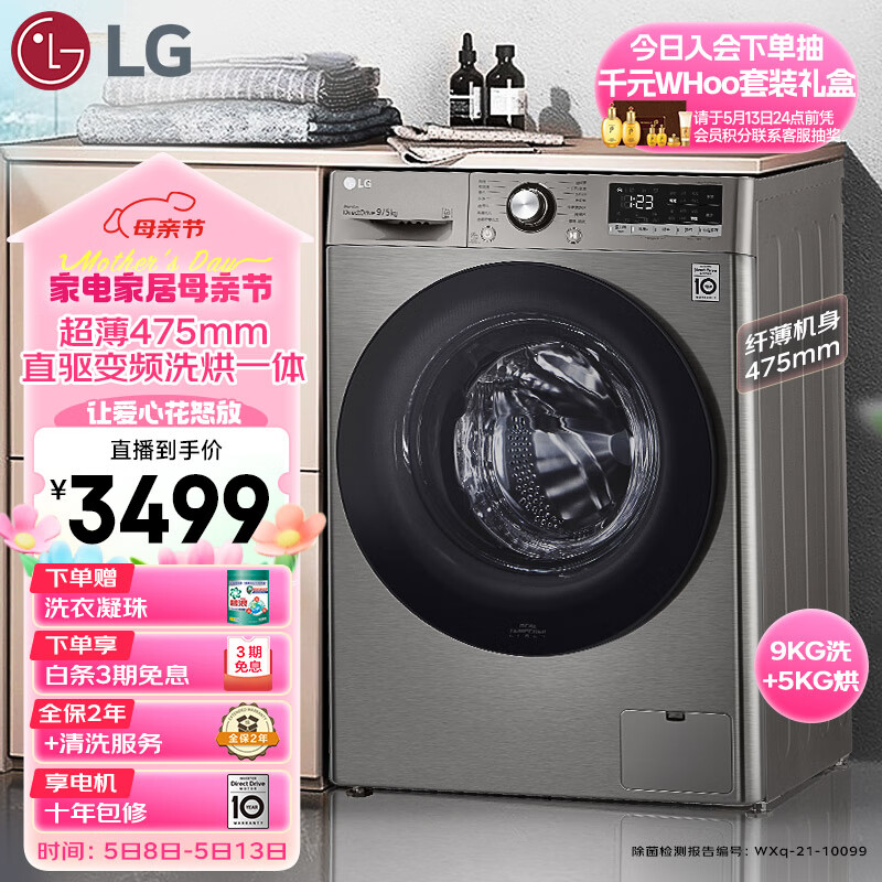 LG9KG超薄滚筒全自动洗衣机洗烘一体 家用超薄 自动烘干14分钟快洗 智能手洗 高温洗 银 FCY90M2P价格:3599.00元!